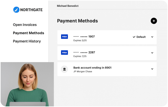 Quickly generate and send invoices by email or text. Customers can pay directly through a secure, branded payment portal, view past transactions, and manage saved payment methods—all without needing a physical card reader.