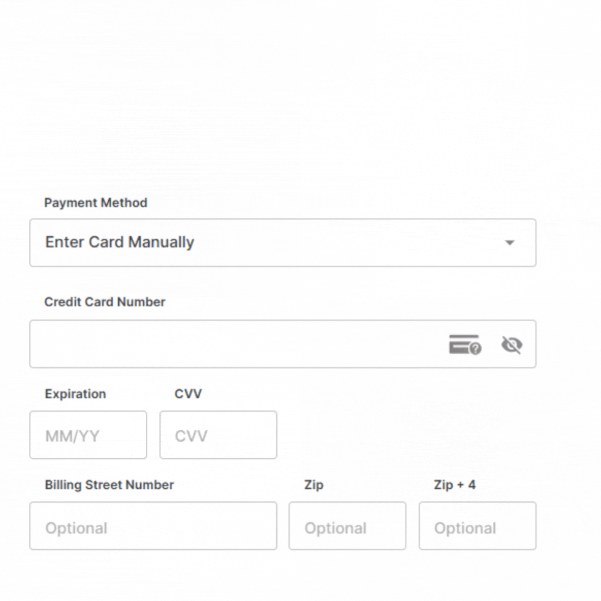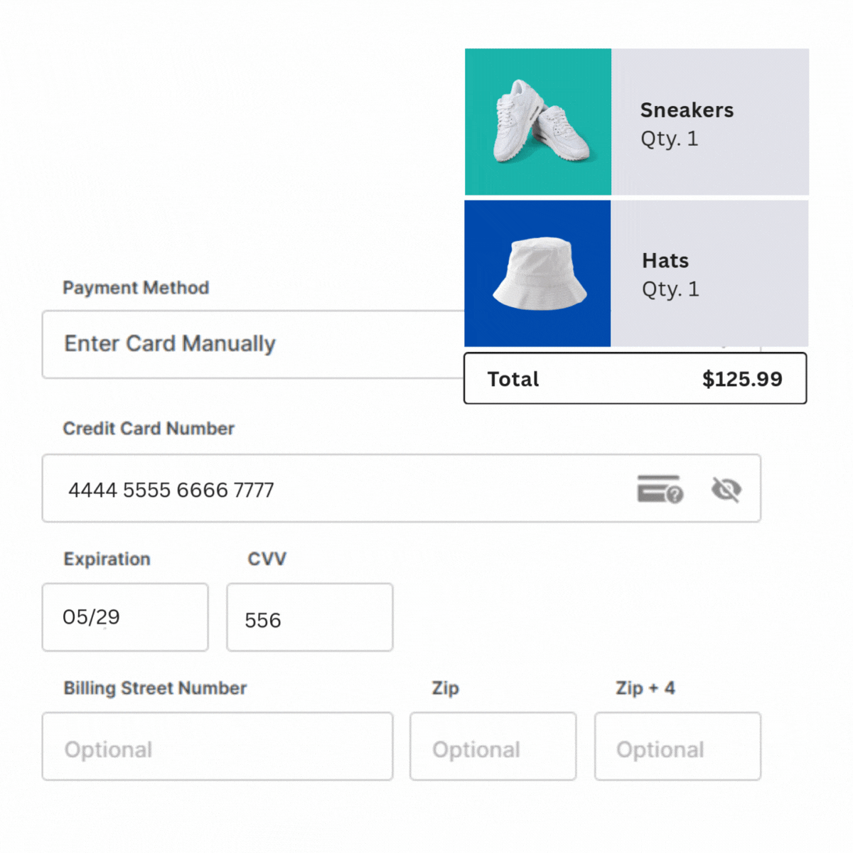 Type in the card number, expiration date, CVV, and billing information into the secure form.
